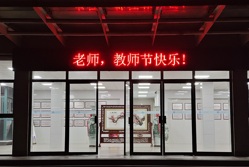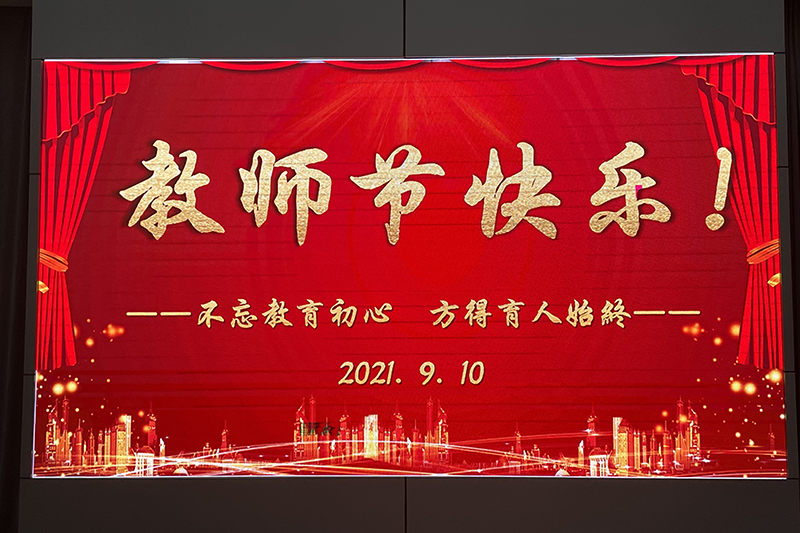 一盏盏灯,次第为您点亮;一块块LED屏,滚动播出“教师节快乐”“老师您好”字幕;电视、各种电子海报,洋溢着对全体教师的节日祝福,连英俊帅气的门卫小伙,也佩戴着“教师节快乐”“老师您辛苦了”大红绶带,营造了浓厚的节日氛围……