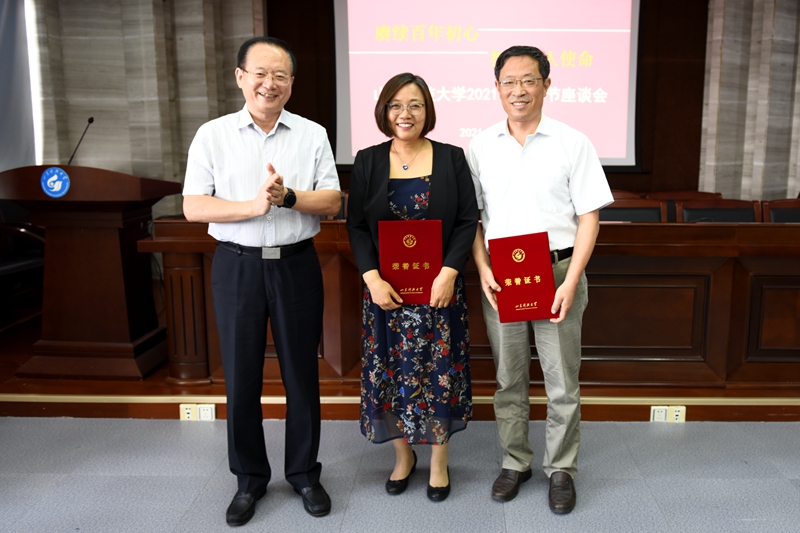 座谈会上,罗公利、张建分别为2021年学校最美教师、教书育人楷模教师代表,2021年校优秀教师、优秀教育工作者代表以及从事教育事业三十年的教师代表颁发荣誉证书。