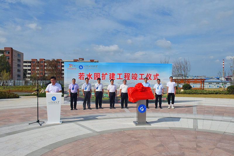 仪式上,姚庆国、张英杰、刘伟韬及学生代表郭铖共同为若水园扩建竣工揭牌。