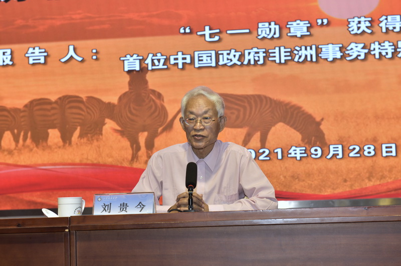 为深入学习贯彻习近平总书记在庆祝中国共产党成立100周年大会上的重要讲话精神,进一步推动党史学习教育走深走实,9月28日,学校举办第32期“泰山讲坛”报告会,特邀“七一勋章”获得者、首位中国政府非洲事务特别代表刘贵今来校做《亲历非洲四十年与中国特色的大国外交》专题报告。