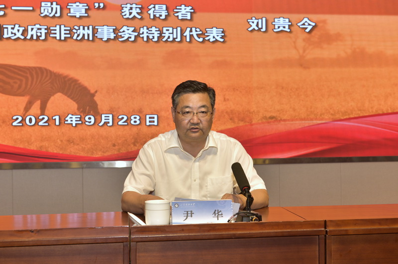报告会上,刘贵今以亲历者、见证者的视角,结合长期从事非洲国家外交工作的亲身经历,用生动形象的事例与师生分享了中非的友谊故事,带领师生了解了中非关系的发展历程、中非友谊的深化之路,向师生讲述了中国在参与非洲建设、推动非洲和平发展,构建人类命运共同体上的努力、付出和成绩。
