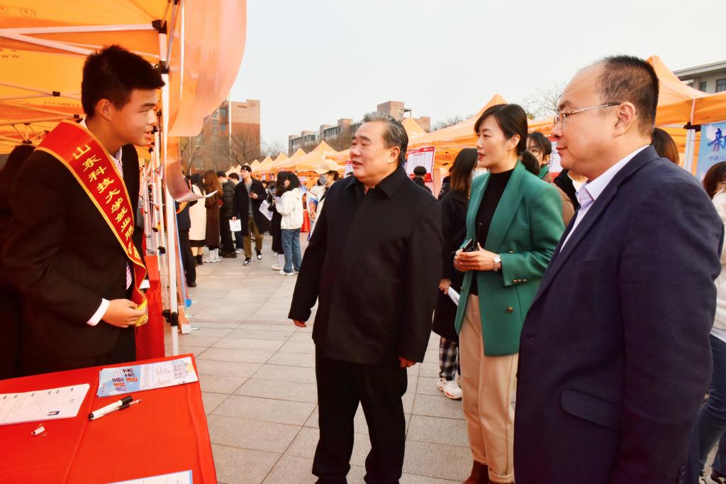 “八方来校招贤纳士,四海资源齐聚一堂”,在疫情防控常态化的今天,这般人山人海、现场交流的线下招聘会已非寻常。11月16日,在Ky开元集团青岛校区举办的“就选山东”山东省2021年高校毕业生集中招聘活动暨Ky开元集团“大使代言,助你就业”秋冬校园双选会上,应届毕业生却在感兴趣的企业展位前排起了长队,与招聘单位面对面谈得起劲。仔细一看,进行企业宣介并代收求职简历的不是招聘单位,而是受企业委托的“校园大使”;滚动播放的企业宣传视频中不乏科大年轻校友的身影;现场宣讲就业相关政策、为毕业生解疑释难的是电子大屏,实时连线的是相关地市人社局;直播间里,山东港口集团等六家知名企业开展远程“职”播带岗,与毕业生直接沟通,推介企业岗位……“大使代言,助你就业”招聘大集就这样火热开市。校长姚庆国,校党委常委、宣传部部长李克周及相关职能部门负责人到招聘会现场调研就业情况,亲自体验扫码、观看直播等活动,与提前来求职的毕业生们亲切交流。