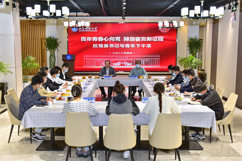 在五四青年节来临之际,学校推出“明德·思齐”新时代共青团下午茶特色品牌活动。在启动仪式上,共青团山东省委副书记尚胜波在线上寄语学校团员青年,要牢记习近平总书记对新时代青年的深切关怀和殷切嘱托,用奋斗的青春书写精彩人生。校党委常委、副校长曾庆田参加了活动。