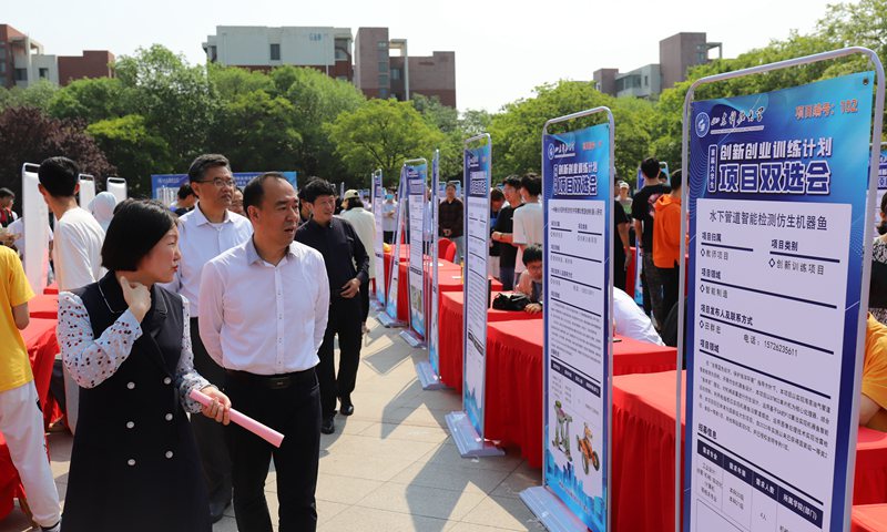 据悉,此次双选会共征集527名师生和10家企业的538个项目,参与线下双选131项。活动前期,创新创业学院开设了大创计划项目指导课程,组织了学院、教师和学生的项目培训和政策宣讲,进行了广泛面向校内外的项目征集,启动了立足学校新闻网、两微一端等多个平台的项目发榜,将在近期开展学校2022年大创计划项目立项答辩。