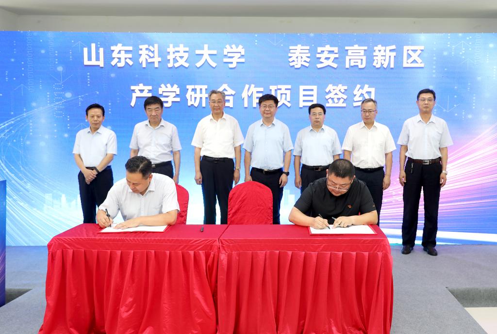 7月9日,学校与泰安高新区、泰安泰山科技有限公司共建泰山智慧谷大学科技园揭牌暨校地企合作框架协议签约仪式在泰山智慧谷举行。校党委副书记兼泰安校区党委书记、管委主任王少鹏,泰安市委常委、副市长姜宁出席仪式。