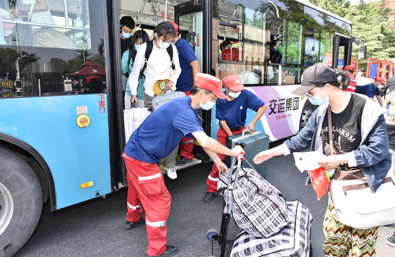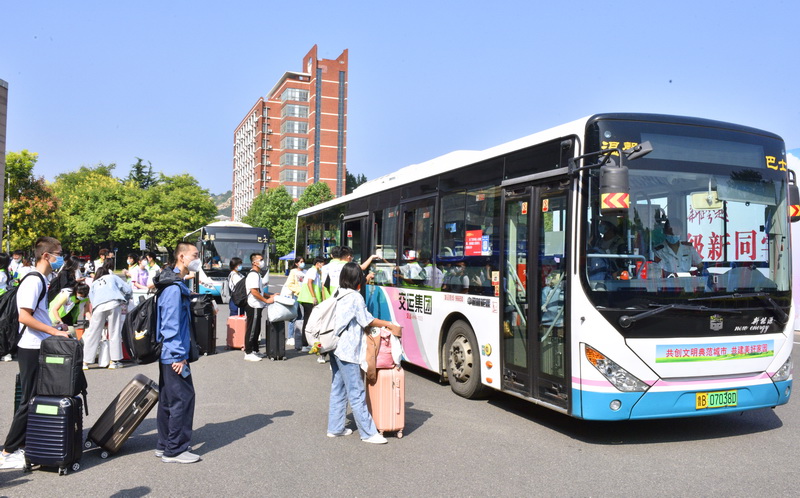 校园公交运送新生直达学院报到点(摄影:苑哓彤)