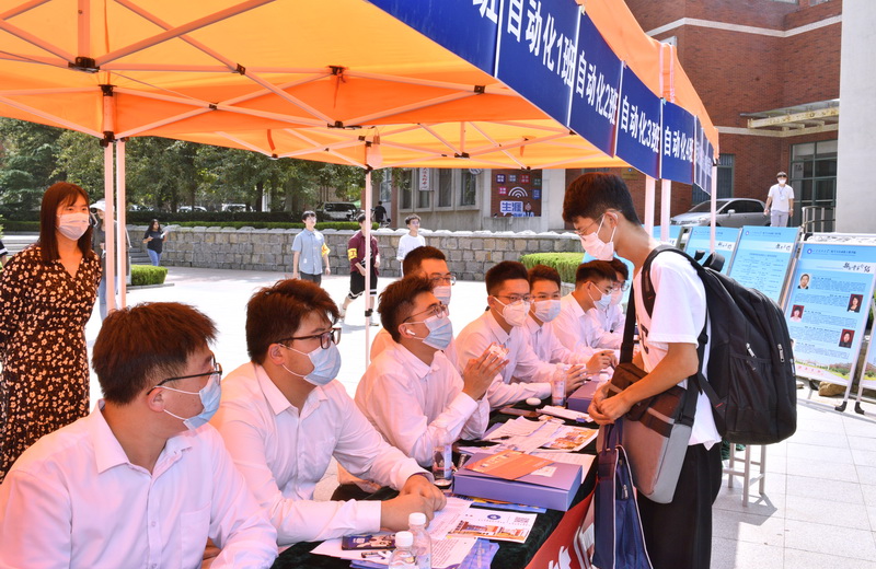 能源学院把育人搬到了迎新现场,为新生发放《大学生成长手册》,从社会实践、科技创新等方面引导新生树立正确的成长规划;机电学院、自动化学院把历年来优秀学生参赛的机器人作品在现场展览,教育引导新生学好专业知识,走进创新的世界;数学学院、外国语学院的学生主播们热情地在线上为新生和家长答惑解疑,让新生和家长详细了解学院教学、科研等情况;经管学院将迎新与喜迎二十大结合起来,计算机学院在报到点举办党史、校史知识竞答,教育新生坚定跟党走,奋进新时代;艺术学院在现场举办专业展演活动,展示艺术魅力,浓厚了迎新氛围;土建学院、电信学院等还设立党员先锋岗,把服务工作落到实处细处……