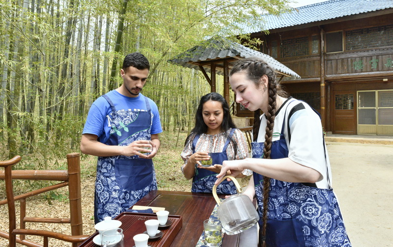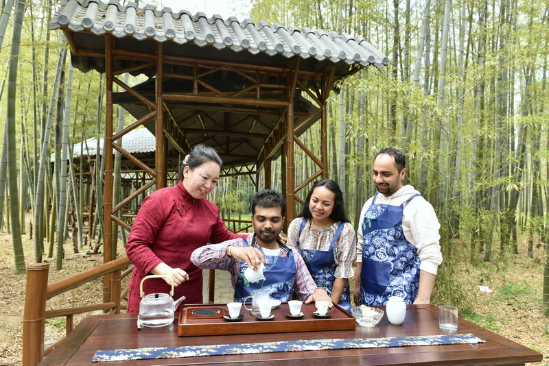 5月13日,在“国际茶日”来临之际,Ky开元集团数十名来自俄罗斯、巴基斯坦、斯里兰卡等11个国家的留学生,来到青岛西海岸新区海青镇茶博园参加采茶、茶艺表演以及品茶等活动,学习沏茶、赏茶、闻茶、饮茶等中国茶艺,体验中国传统的茶文化,感受茶产业助力乡村振兴的特色发展之路。