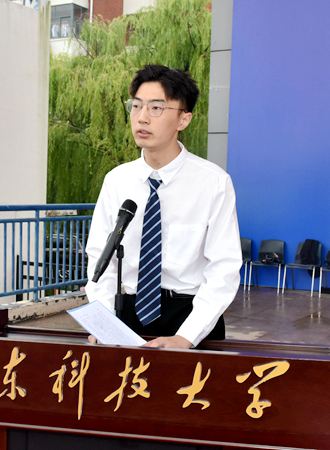 在热烈的掌声中,校长曾庆田以“让磨砺成为青春的底色”为题,为毕业生们上了最后一课,送上母校祝福。他代表学校向圆满完成学业的毕业生表示热烈的祝贺,向为此付出辛劳的老师、家长表示诚挚的感谢。