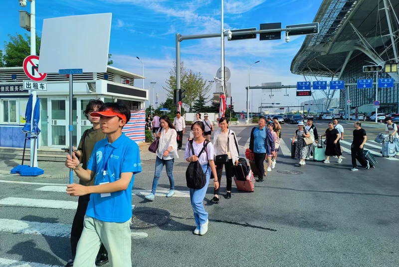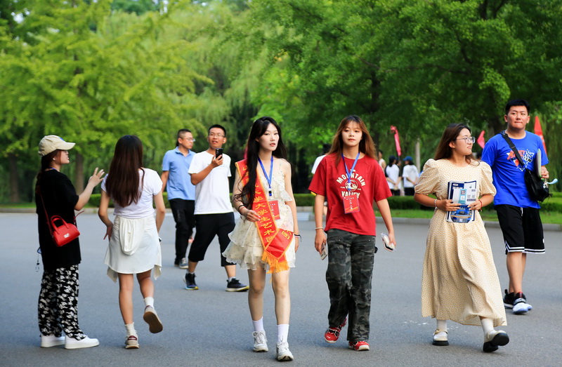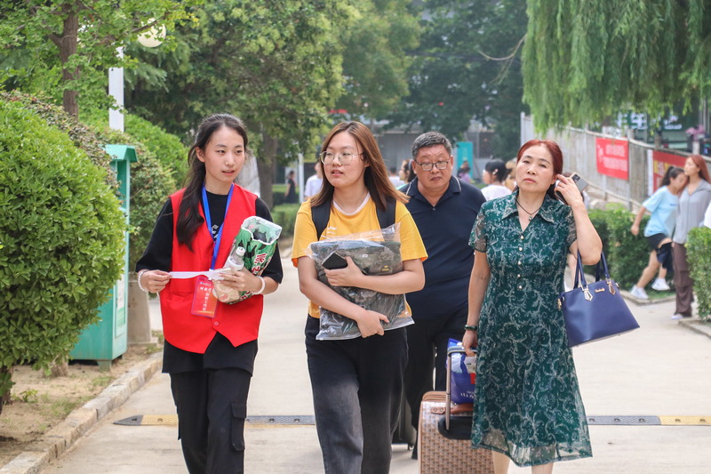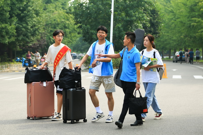 志愿者引导新生前往报到点
