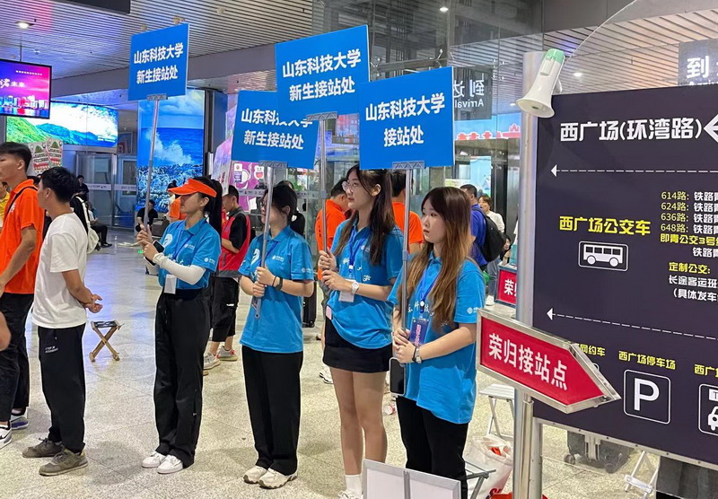 志愿者在火车站迎接新生