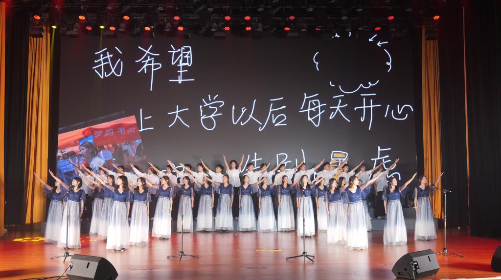材料学院2023级新生张兴说:“迎新晚会结束后,我觉得意犹未尽。晚会不仅向我们展现了精彩的节目,同时也带给我们一些鼓舞。大学生活刚刚开始,我们应该像最后一个节目的名字一样,向前展望,期待未来,我们已准备好一起再出发!”