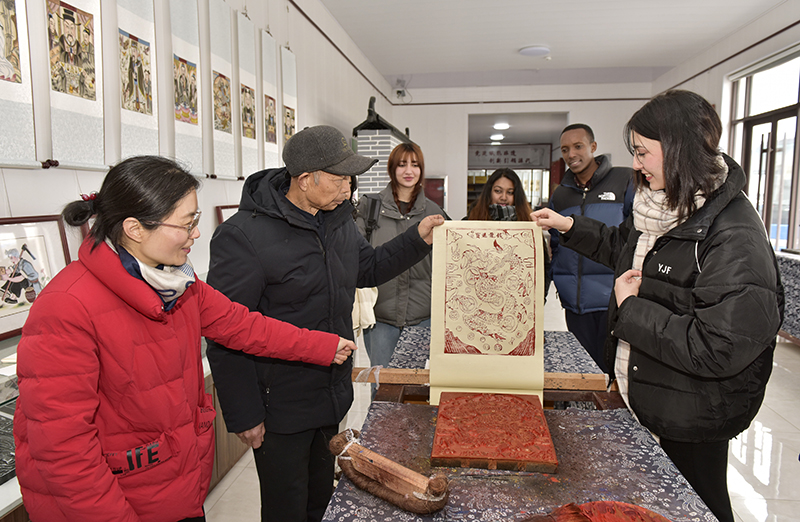 留学生体验木版年画制作工艺