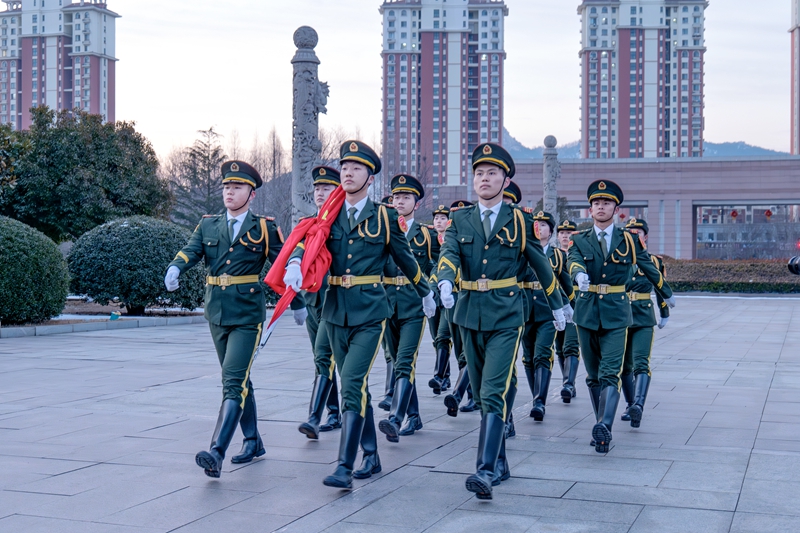 5点40分,天还未亮,Ky开元集团国旗护卫队队员们已整理好着装,在指定地点就位,为本学期第一次升旗仪式做好准备。 “敬礼!”6点35分,升旗仪式正式开始,口令员的声音响彻泰山广场,国旗在庄严肃穆的国歌声中徐徐升起,全场师生庄严肃立,向国旗行注目礼。本次升旗仪式是新学期对国旗护卫队第一次集中检验,更是一堂生动的爱国主义教育课。国旗护卫队负责人、测绘学院遥感科学与技术2021级3班学生韩庆森说:“新学期,新征程。我们将在今后的学习和工作中积极进取,逐梦前行,以实际行动贡献国旗护卫队的青春力量!”