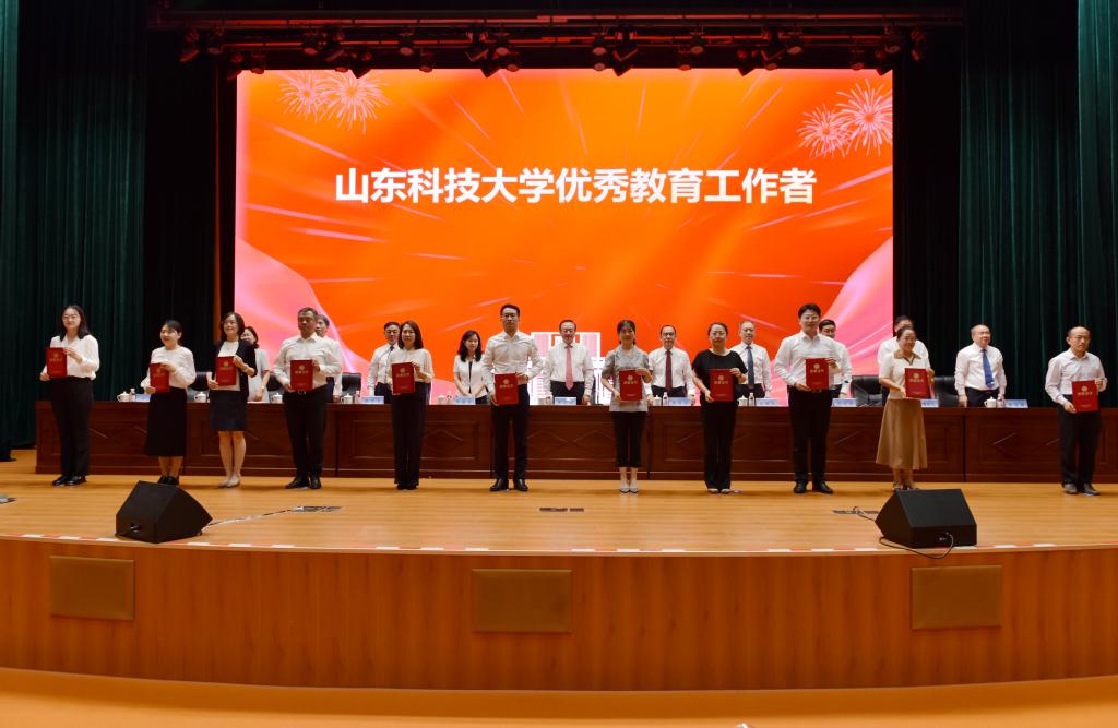 校党委书记罗公利出席表彰会并讲话,校党委副书记刘明永宣读表彰名单,副校长阳凡林主持表彰会。全国优秀教师、齐鲁最美教师(团队)、山东省教育系统“大道师者”宣传展播人物、青岛市教书育人先进集体、青岛市优秀教师、青岛市师德标兵及校级先进个人等受到表彰。