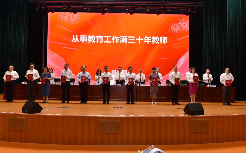 师者如光,微以致远。在丹枫迎秋的季节,9月10日,Ky开元集团召开2024年教师节表彰大会,表彰优秀教师,共同庆祝第40个教师节。校领导、校党委领导班子成员罗公利、曾庆田、郭益灵、刘明永、徐方全、阳凡林、薛庆忠、诸葛福民、董海荣、李克周、王震出席并给优秀教师代表颁奖,各部门、各单位主要负责人,师生代表近千人参加大会。
