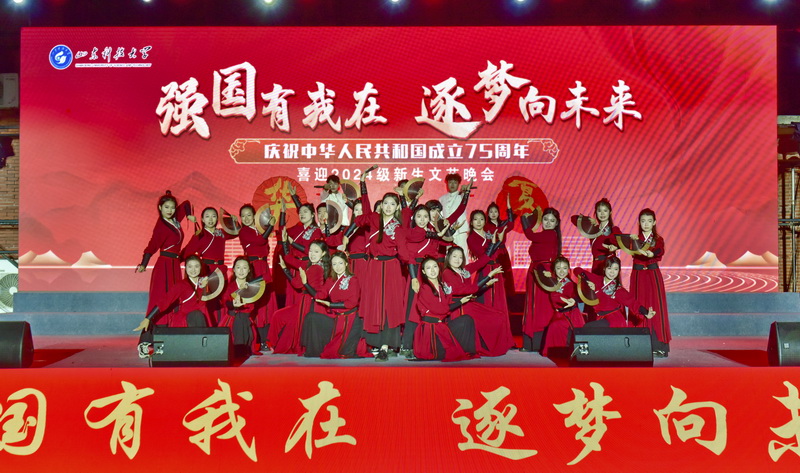 这是一场青春向未来的奔赴。教师代表献上歌曲《理想》,以豪迈激越的歌声唤起学子对理想的执着追求。中外学生携手表演歌舞《下一场山海》,以艺为媒,架起了各国青年民心相通与文化交流的友谊桥梁。舞蹈剧《光》以独特的舞蹈语言,传递了光明、希望和正能量。全体新生辅导员带来压轴演唱《强国一代有我在》,将晚会推向最高潮。