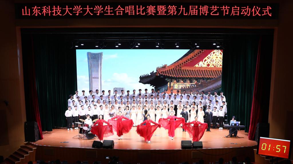 “我和我的祖国,一刻也不能分割;无论我走到哪里,都流出一首赞歌……”10月22日,学校“青春礼赞祖国 强国复兴有我”大学生合唱比赛暨第九届博艺节开幕。19支代表队、3500名师生齐聚在图书信息中心惟真讲堂共上一堂有声有色的舞台上的思政大课。他们结合讲、演、奏的方式,以铿锵有力、嘹亮动人的歌声,歌颂伟大祖国,吟唱难忘岁月,展望美好征程。