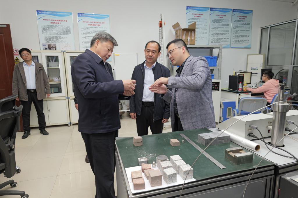 会见后,杨仁树一行在曾庆田的陪同下参观了矿山灾害预防控制实验室。