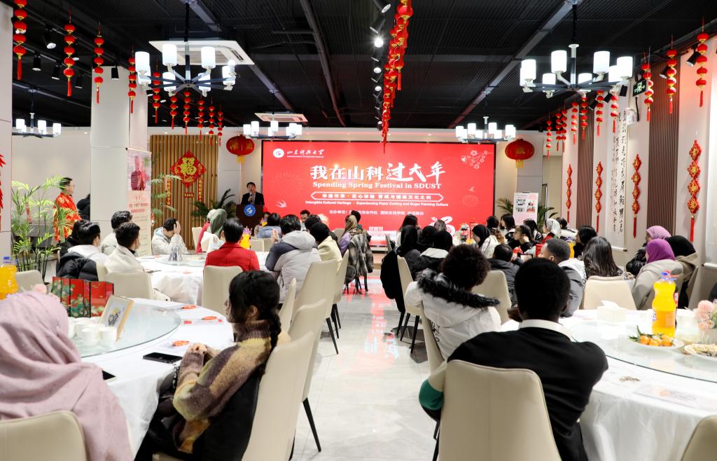 1月24日,学校举办“我在山科过大年”系列活动——“非遗传承·匠心体验剪纸与糖画文化之约”活动。来自摩洛哥、印度尼西亚、伊朗、也门、塔吉克斯坦等12个国家的70余名留学生齐聚一堂,沉浸式体验剪纸、糖画等非遗技艺,感受中华传统文化魅力。副校长董海荣出席活动。