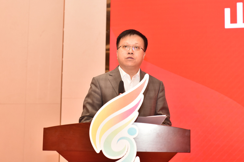 活动现场,与会领导共同启动“建行杯”山东省大学生创新大赛(2025)“青年红色筑梦之旅”活动。山东省教育厅高等教育处处长曾宪文为学生代表出征授旗。