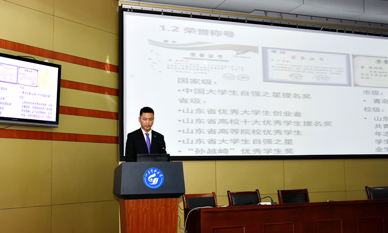 据了解,此次活动为学校组织举办的2018年度“十大优秀学生”候选人答辩及展示活动,参加答辩的候选人来自青岛校区16个学院的23名学生,评委由学生工作处、校团委、研究生院及各学院学生工作负责人组成。此次答辩活动分为三个环节,分别为自我展示、公开答辩和现场提问。在自我展示环节,参加答辩的候选人通过展示PPT的形式,介绍个人的基本情况,并从专业学习、学术研究、科技创新、社会实践、志愿服务、文体艺术等多个方面,全方位展示自己取得的成绩、典型的做法和经验,在展示自己取得成绩的同时分享自己大学生活的感悟,达到教育和启迪广大同学的目的。