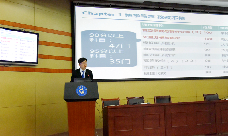 在答辩会现场,记者看到,最牛学霸候选人的简历分别“曝光”——“国奖”、“第一名”、“发明专利”、“核心期刊论文”等成为最常见字眼,几乎每个学生候选人都获得有多个第一名、国家奖学金以及发明专利等,每次展示完毕,现场便爆发阵阵掌声。