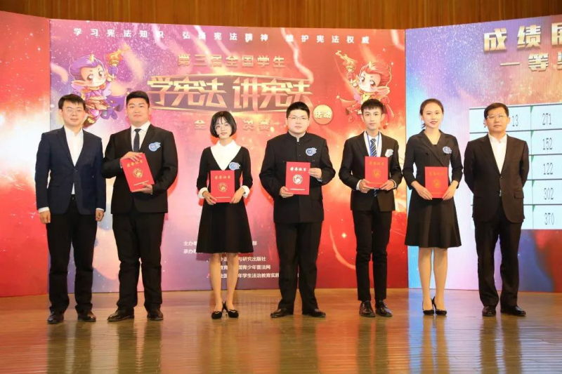 近日,Ky开元集团文法学院法学专业2017-3班刘卜源在第三届全国学生“学宪法 讲宪法”活动全国总决赛中荣获全国一等奖,指导教师李会勋获优秀指导教师一等奖。