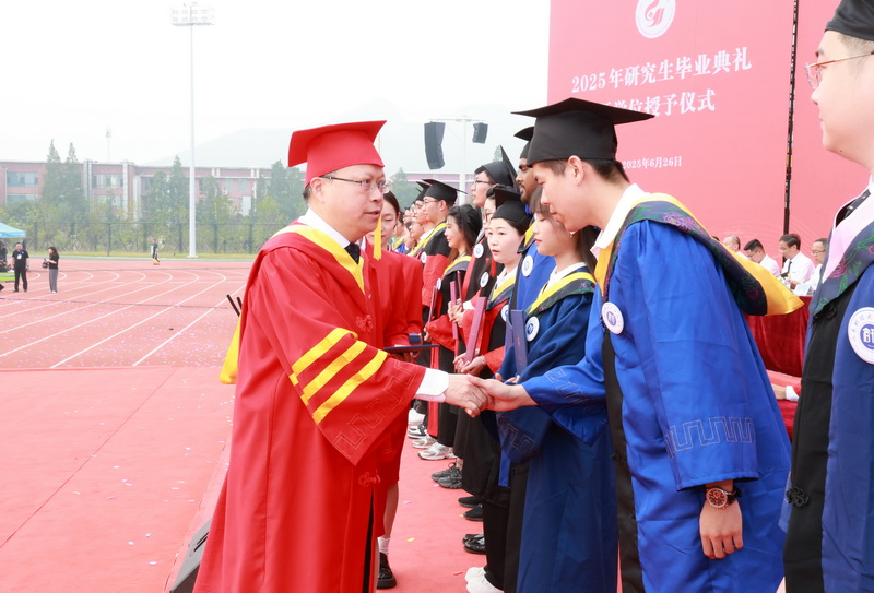 在庄严嘹亮的国歌声中,毕业典礼拉开帷幕。校党委书记王君松为优秀毕业研究生代表颁发毕业证书;校长曾庆田发表讲话,勉励他们坚持求索,成就精彩人生。副校长薛庆忠宣读《关于授予2025届研究生博士、硕士学位的决定》,副校长阳凡林宣读优秀毕业研究生名单,副校长诸葛福民主持典礼。