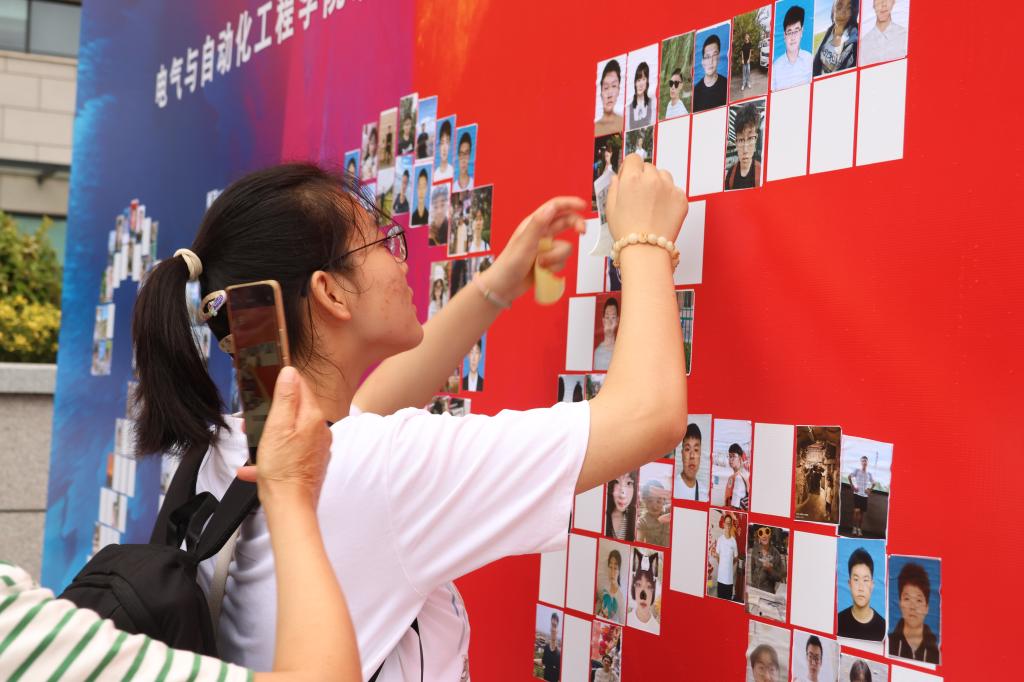 从科技互动到人文体验,各学院的迎新创意异彩纷呈。外语学院设置时光邮局背景板供学生寄语未来,制作爱国教育与祝福手举牌供打卡合影;材料学院带来“青春笑靥,绘聚新程——校园初遇签到礼”,新生手绘自画像开启山科之旅;机电学院设计“五”力赋能仪式,新生参与倒彩砂环节,色彩交融的砂瓶象征多元成长与力量汇聚。