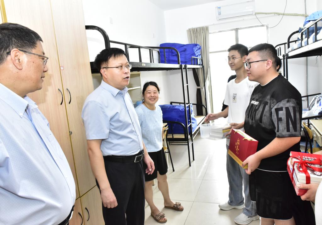 在询问新生报到体验、了解“一站式”服务落实情况后,校领导对现场秩序维护、志愿服务保障等工作给予肯定,并叮嘱工作人员要细致做好后续衔接,确保新生快速适应校园生活。