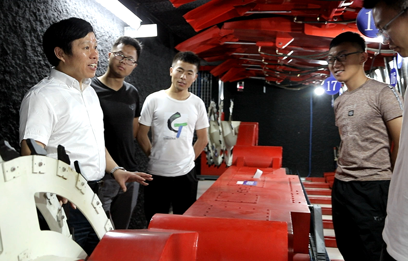 与研究生在模拟矿井交流