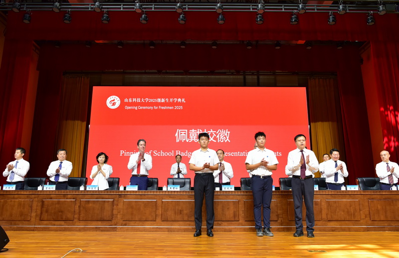 领导、老师为青岛校区新生代表佩戴校徽