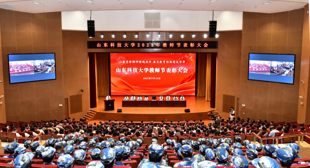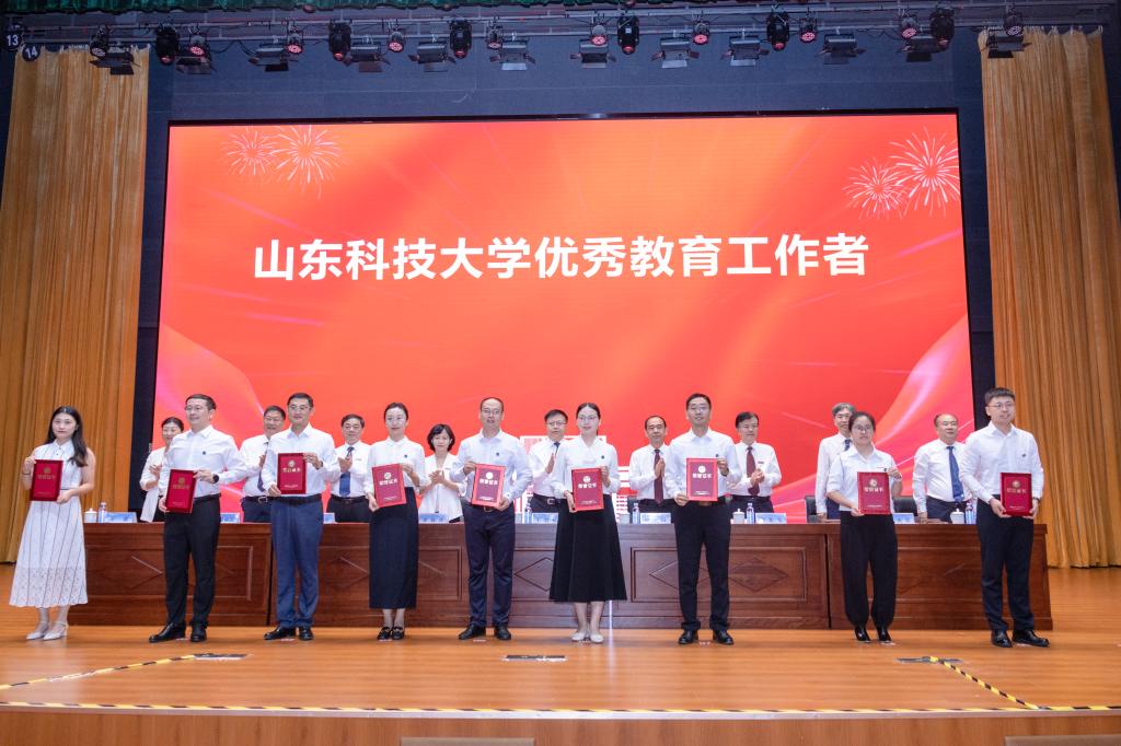 校党委书记王君松出席表彰会并讲话,校党委副书记郭益灵宣读表彰名单,副校长薛庆忠主持表彰会。全国高校黄大年式教师团队、齐鲁最美教师、山东学校思政课十佳教师、山东高校十佳辅导员、山东高校优秀辅导员及校级先进个人等受到表彰。