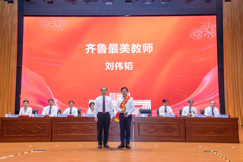 曾庆田为齐鲁最美教师刘伟韬颁奖