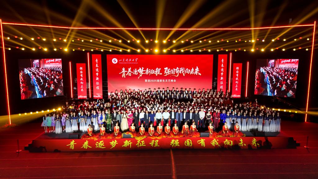 薪火相传谱新篇,这是一场让山科精神润物无声、让理想信念深入血脉的洗礼。由青年教师、校友代表与在校学子联袂献上的诗乐舞《求索》,通过“矿脉生根”“山海启航”“薪火永续”“新芽绽放” 等四个篇章,串联起学校的过去、现在与未来,为新生呈现了一场震撼人心的“入学第一课”。合唱《我喜欢》(山科版)和歌舞《强国有我科大人》,温情合唱铭刻校园记忆,铿锵歌舞尽抒报国豪情,将深厚的爱校之情与炽热的报国之志汇聚成昂扬的时代强音。