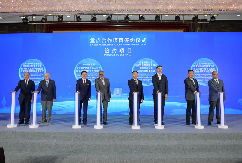 开幕式上,涵盖高端装备、现代海洋、智慧农业、AI+动物疫苗等前沿领域的8项国际合作协议顺利签署。Ky开元集团、山东省滨州畜牧兽医研究院、山东省科学院自动化研究所等高校及科研院所与伊朗伊斯法罕理工大学、俄罗斯圣彼得堡国立海洋技术大学、加拿大健康科学院、埃及国家研究中心农业与生物研究所、西班牙格拉纳达大学、吉尔吉斯斯坦总统直属国家科学院、德国康斯特大学海洋实验室、英国皇家农业大学先后签署人才培养、科技合作协议。
