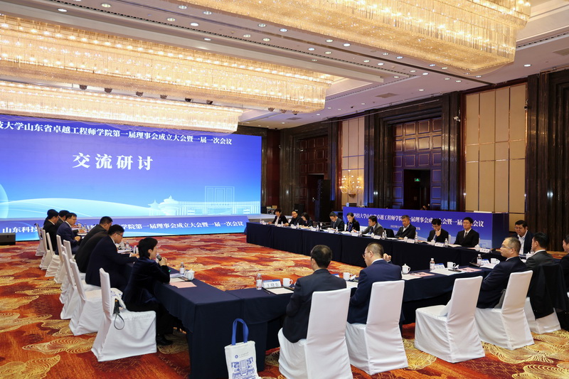 王君松在致辞中表示,学校将以此次理事会成立为新的起点,进一步加强与各理事单位的交流合作,深化产教融合,创新培养模式,不断提升办学水平和人才培养质量。他希望各位理事为学院的发展多提宝贵意见、多引优质资源、多搭合作平台,探索出一条具有山东特色、山科风格的卓越工程师培养新路径,为新时代社会主义现代化强省建设源源不断地输送大批德才兼备、堪当大任的卓越人才。