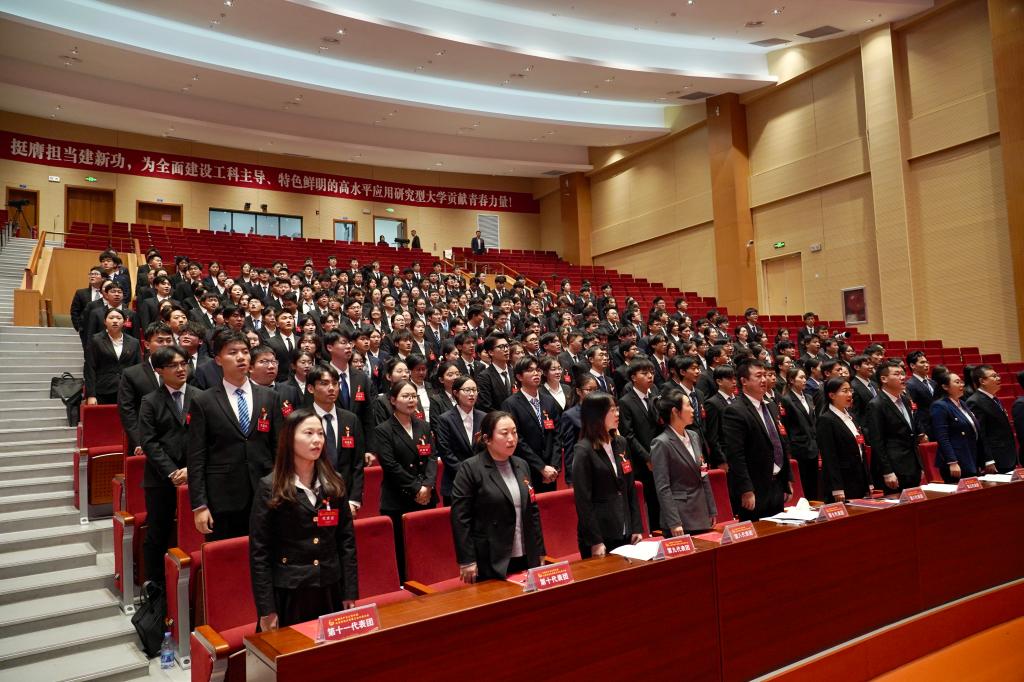 大会在庄严雄壮的国歌声中开幕。王君松代表学校党委向大会的召开表示祝贺,向长期以来关心支持学校发展的上级团组织、兄弟高校及社会各界朋友表示感谢,对学校共青团工作给予肯定。他表示,山科共青团组织是学校党委能够完全信赖,关键时刻靠得住、顶得上的先锋力量,是服务学校发展和青年成长的坚强堡垒。山科青年是胸怀理想、堪当重任、充满朝气的一代,是学校“冲一流”建设的生力军、突击队。他代表学校党委,向全校各级团组织和广大团员青年提出三点希望:坚定政治方向,铸牢听党指挥的立身之本,锻造对党忠诚、信念坚定、堪当重任的山科共青团;坚持改革指向,锤炼从严从实的过硬作风,锻造锐意进取、纪律严明、清澈纯粹的山科共青团;坚守服务取向,勇担时代赋予的使命任务,锻造暖心护航、担当作为、胸怀大局的山科共青团。他表示,学校党委将一如既往加强对共青团工作的全面领导,希望全校各级党组织、各部门关心青年、支持青年,为青年成长成才创造更优环境。