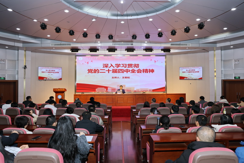 王君松围绕党的二十届四中全会整体情况、准确把握“十五五”时期在基本实现社会主义现代化进程中的重要地位、深刻领会“十五五”时期经济社会发展的指导方针和主要目标、全面理解“十五五”时期经济社会发展战略任务和重大举措、坚持和加强党的全面领导等方面作了系统而深入的阐释,并结合省委十二届十次全会精神和学校发展实际,就中央、省委全会精神在学校的贯彻落实作出部署。整场报告逻辑严密、催人奋进,既有理论高度,又有实践深度,为师生深刻领会把握党的二十届四中全会精神提供了精准辅导。