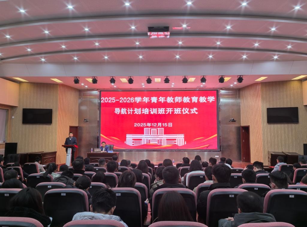 12月15日,学校举办2025-2026学年青年教师教育教学导航计划培训班开班仪式。校党委书记王君松出席仪式并作专题报告,副校长阳凡林作开班动员讲话。