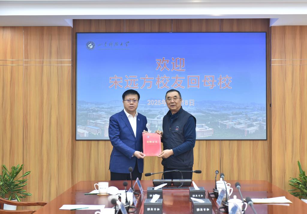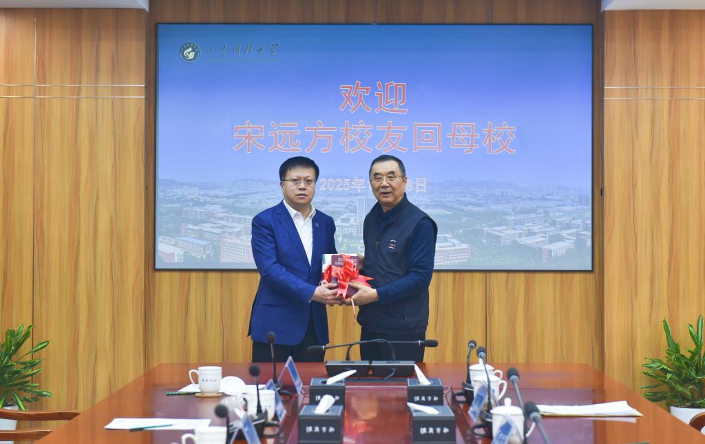 12月18日,矿山建筑系1977级校友,山东省人大常委会原副主任、青岛市人大常委会原主任、省老年人体育协会主席宋远方回访母校并向母校捐赠专著。校党委书记王君松代表学校接受捐赠,并向宋远方颁发捐赠证书,回赠致谢牌和档案纪念册。副校长诸葛福民参加捐赠活动。