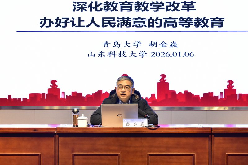 开班式后,胡金焱以《深化教育教学改革办好人民满意的高等教育》为题作专题辅导报告。报告从党的二十届四中全会通过的《建议》对“十五五”时期教育事业发展作出的系统部署入题,分析了信息化时代高等教育面临的机遇与挑战,从教育教学理念、人才培养地位、专业培养体系等十个方面论述了高校深化综合改革的路径选择,并结合青岛大学“一二三四五”协同育人体系、“六位一体”思政育人模式等鲜活案例,阐释了探索立德树人的有效途径,对我校打造“新工科”高峰、推动学科交叉融合、构建高水平人才培养体系提供了有益借鉴。整场报告视野宏阔、逻辑紧密,引发热烈反响。