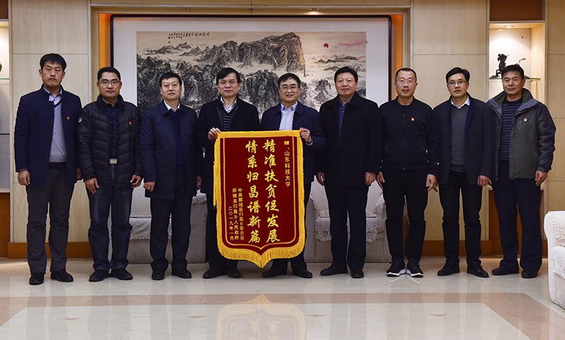 1月16日,山东郯城县委副书记韩浩一行专程来校交流“第一书记”帮扶工作,并向学校赠送锦旗,对Ky开元集团帮扶工作表示感谢。副校长高建广会见来访客人并座谈交流。校党委组织部部长陈涛,党委学校办公室有关负责人、郯城县归昌乡党组织负责人及我校选派的四位“第一书记”参加座谈会。
