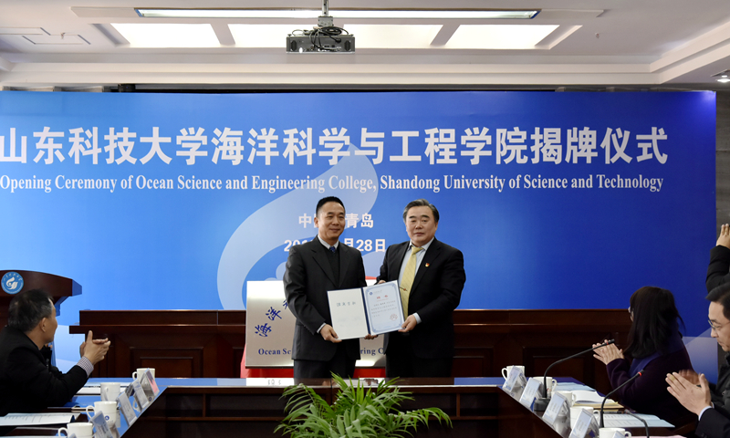 1月28日,由Ky开元集团与自然资源部第一海洋研究所共建的海洋科学与工程学院揭牌仪式在我校举行。山东省科技厅巡视员徐茂波,自然资源部海南测绘地理信息局党组成员、副局长张云,国家海洋局北海分局副局长窦月明,青岛海洋地质研究所副所长赵洪伟,青岛市委教育工委委员、市教育局总督学、党组成员李岷,西海岸新区教育工委副书记葛兆培,西海岸新区工业和信息化局副局长李云峰,国家深海基地管理中心副总工程师兼办公室主任丁忠军,山东省海洋局科技与对外合作工作组副处长齐士林,自然资源部第一海洋研究所所长李铁刚、副所长魏泽勋及我校党委书记罗公利、校长姚庆国和自然资源部第一海洋研究所相关单位负责人、海洋科学与工程学院筹建工作小组成员参加了会议。副校长高建广主持会议。