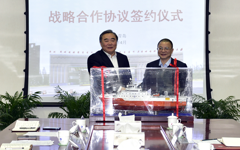 签约仪式结束后,吴能友向姚庆国赠送了“海洋地质九号”(地质)调查船模型。“海洋地质九号”是中国领先的同时具备专业地震调查与综合地质地球物理调查功能的调查船,国际先进的以短道距地震电缆二维(三维)多道地震为主,集地球物理测量、水文环境测量和地质取样技术等为一体的多功能综合物探(地质)调查船,2017年12月28日入列以来,累计航程25000余海里,完成多波束、浅地层剖面、海洋重力磁力等测线各13290公里,二维多道地震测量942公里,宽线双缆多道地震测量2759公里。在海洋基础地质调查、海域油气资源勘查、深海探测技术应用等方面取得了重要成果。吴能友表示,合作协议签订后,该船将向Ky开元集团师生全面开放,助力学校相关科学研究项目的开展。