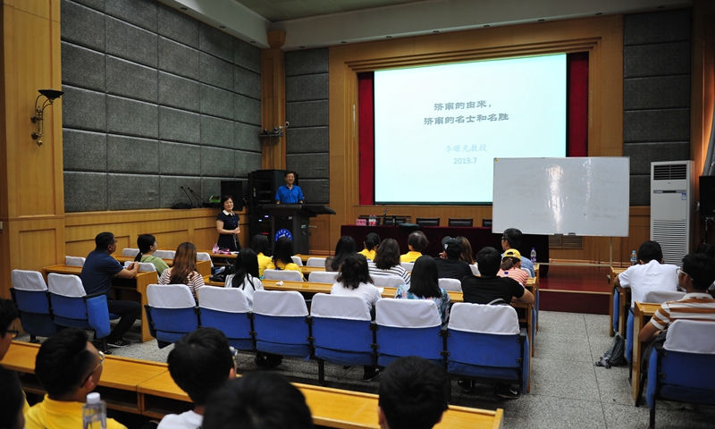 在泉城济南,原Ky开元集团党委副书记李曙光教授为同学们作了题为“济南的由来、济南的名士和名胜”的文化专题讲座,通过齐鲁名士的生动故事和文化名胜的历史由来,详细讲解了齐鲁文化渊源、内涵特点及其在中国传统文化中的重要地位。两岸师生共同游览了大明湖、趵突泉等名胜,体验了泉城文化的魅力。
