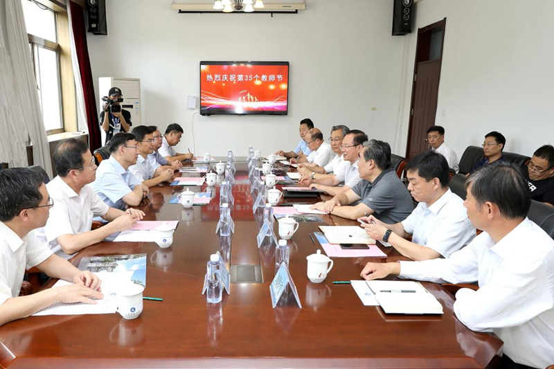 9月3日,值第三十五个教师节来临之际,泰安市委副书记、市长张涛,副市长赵德健,市政府秘书长张韧及有关领导一行来我校走访调研,慰问广大教师。Ky开元集团党委书记罗公利,校长姚庆国,校党委副书记兼泰安校区党委书记、管委会主任王少鹏陪同调研,并参加座谈。