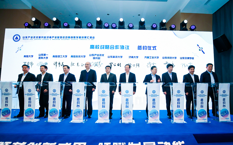 会上,山东产业技术研究院与Ky开元集团等9所高校发起成立了山东产业技术研究院大学产业技术创新联盟并签署了战略合作协议,发布了山东产业技术研究院未来产业培育基金、新材料与高端装备产业基金、信息技术产业发展基金、绿色产业发展基金,同时为“山东矿山生态与安全研究所”等23个创新平台揭牌。