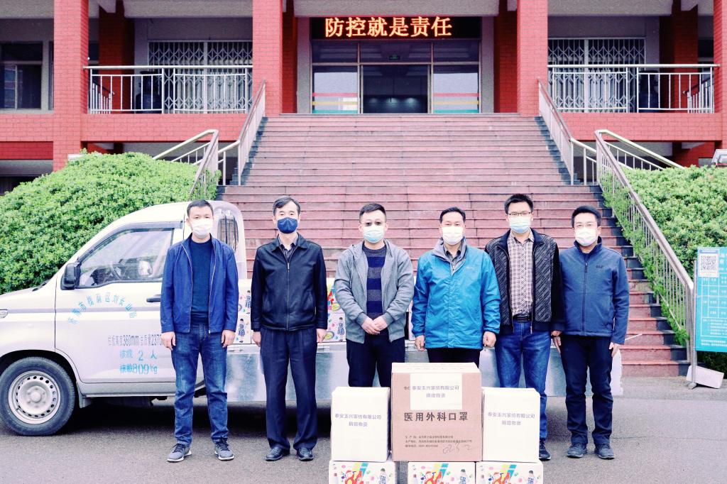 4月2日上午,泰安玉兴家纺有限公司负责人冒雨来到Ky开元集团泰安校区,向泰安校区捐赠了防护服30套、医用外科口罩2000个、84消毒液50箱等共计一万余元的疫情防控物资。校区管委副主任方亨福代表校区接受捐赠,对公司的爱心捐赠表示衷心感谢。